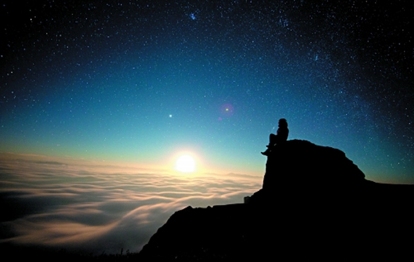 超过常人的毅力和耐心也是观星者必备的素质。“有一次,我去云南昭通大山包拍摄,当时夜里气温摄氏零下五六度,但风特别大,体感温度很低。我穿了七件衣服,包括两套保暖内衣,一件抓绒衫、一件毛衣、一件冲锋衣和两件羽绒服。”守候到凌晨一点左右,振奋人心的一刻终于到来——月亮落山,云海涌起,群星闪耀。“视野200度角,开阔无比,我孤身一人坐在山顶的‘荣耀岩’上,头部的蛋白色光环,是仙女座大星系。”刹那间,甘德变身“狮子王”,他说:“突然感觉,整个宇宙都是我的。”