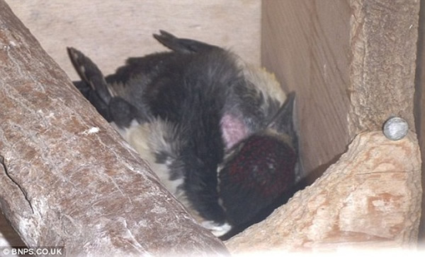 最初,亚瑟把小啄木鸟养在垫了干草的木箱里