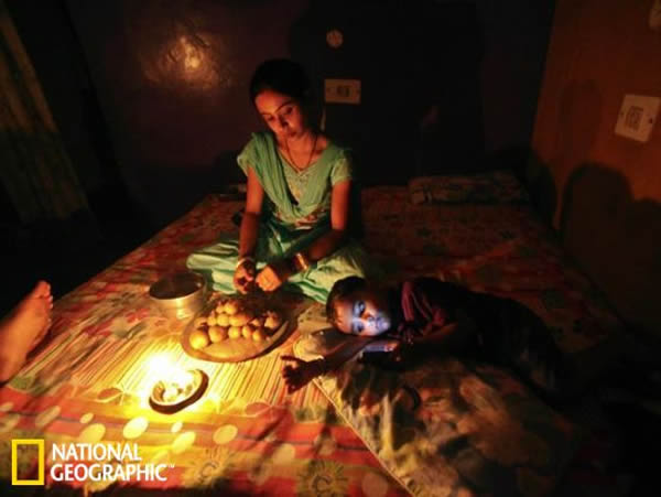 2012年8月1日,在印度查谟市,一个女孩正在用蜡烛的火苗做饭。7月30日和31日的大规模停电事故让印度东北部六亿七千万人受到影响。在8月1日电力恢复之前,大约有一半的印度人因为电力系统瘫痪而在黑暗中度过了两天两夜,受影响人数占到了全世界人口的十分之一。停电事故的根源一直充满争议,但是这一灾难性的事故却在很早之前就被预言到了:印度的整体电力供给量经常无法满足高峰期的电量需求。印度总理辛格已经提请4千亿美元的投资来帮助提高发电量和提升印度电网的稳定性。但是印度的“超级煤电厂计划”却因为经济原因受到了阻碍,计划被一拖再拖。