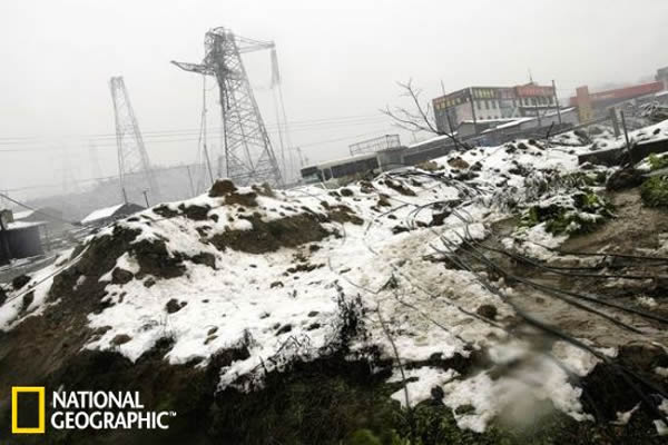 2008年2月中国部分地区经历了一场50年一遇的雪灾,这次雪灾对湖南地区的电网设备造成了巨大的破坏,让450万人在没有电的情况下生活了两个星期之久。这幅照片拍摄于2008年2月5日,中国政府宣布已经有11名电力工作者在抢修设施的过程中殉职。在这次恶劣的自然灾害之后,中国大力加强了对电力系统状况的监控能力,可以有效监控潜在的威胁,并且在停电事件发生之后可以有效防止事故扩散到更大的地区。克拉克说,“我在过去的几年中到过中国,对他们在该领域所达到的技术水平感到很惊奇。”