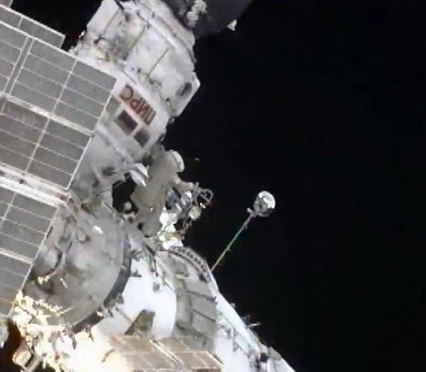 国际空间站俄罗斯宇航员抛出球状卫星监控太空垃圾