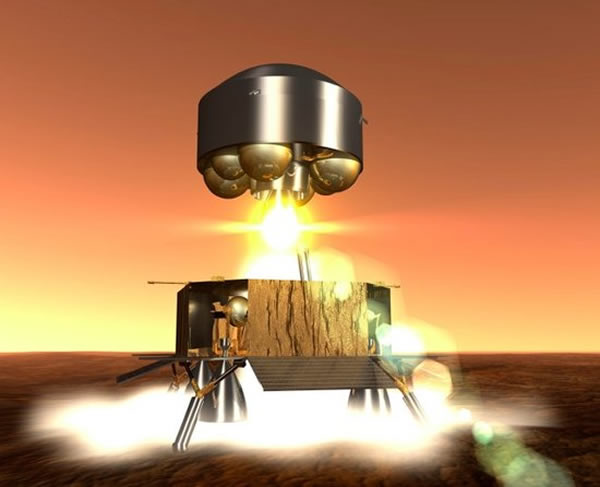 火星物质样本返回计划(MSR)是一个混合版的常规行星际探索任务,其中涉及到电力推进系统和先进的着陆方案,途径一条优化设计的火星与地球空间飞行轨道抵达这颗红色的星球。由于采用的推进剂较少,负载较轻,因此可以使用"联盟-FG"(Soyuz-Fregat)运载火箭等火箭进行常规发射,并非需要使用阿丽亚娜5 ECA型重型运载火箭,在火星与地球之间的空间飞行途中,方案中涉及到使用20千瓦级的太阳能电池板阵列,能量使用要求类似于位于地球同步轨道上的通信卫星电力供应等级。