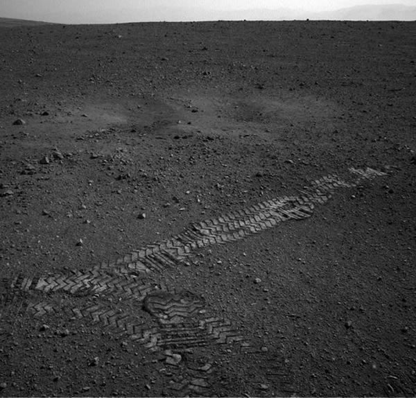 好奇号火星车车轮在火星表面留下的痕迹