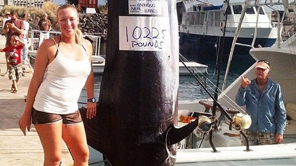 28岁的莫莉在夏威夷钓上这条464公斤重的马林鱼