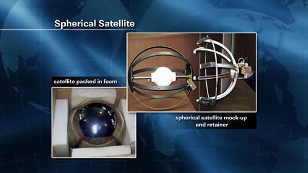 Spherical卫星重9千克,直径53厘米,呈球形,俄罗斯科学家将它作为一个太空目标,测试太空跟踪技术,这种技术将用于监视太空垃圾;还要测试它如何重返大气层。这个小球预计在轨停留三个月,之后坠向地球。