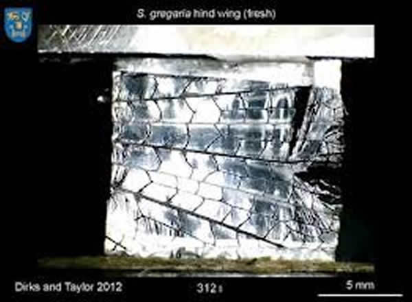 研究人员将实验室养殖的沙漠蝗虫一种害虫,能持续数日迁徙并能覆盖数千公里的范围——的后翼节片固定在数个微小框架内,并持续拉伸这段翅膀直到它被撕裂。不出所料,蝗虫翅膀脉络间的薄膜对裂纹扩展丝毫没有抵抗力。这些薄膜大约有1.7微米到3.7微米的厚度,主要是由交叉结合的蛋白质组成。但是,当裂缝蔓延到翅脉时,其蔓延速度会明显变慢或者停止。研究人员表示,总得来说,翅脉能够将昆虫翅膀对裂纹扩展的抵抗力提高50%。相关研究成果在线发表于近期的《公共科学图书馆•综合》网络版上。