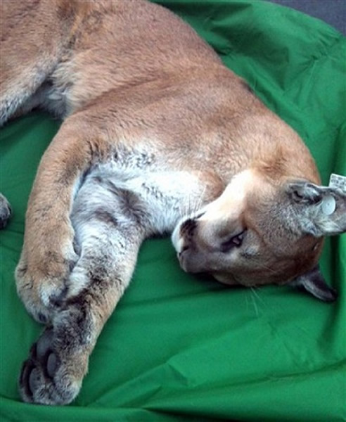 野生动物局人员赶到后将美洲狮麻醉,并在它的耳朵上做上了标记,从而将其纳入当地美洲狮研究计划,作为研究目标之一。当局事后将其放生。