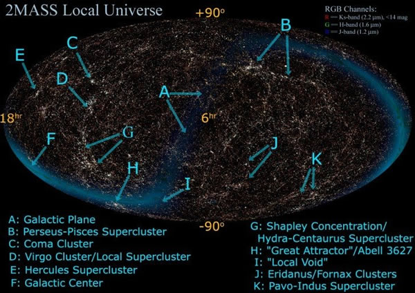 然而,有研究发现宇宙时空并不是一个不规则碎片形,宇宙中无数的恒星组成了星系,而星系可以“扎堆”形成星系团,星系团可以形成超星系团,天文学家们通过对大尺度宇宙空间的研究过程中 ,一次又一次地发现时空中物质不断聚集形成大更大规模的集群。传统的观点上认为宇宙是一个不规则的碎片形,这一理论使得科学家们对宇宙的认识产生深远的影响,但现在一项最新的天文学调查反驳了这一观点。