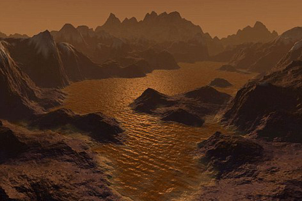 泰坦表面想象图:拥有液态湖泊的“岩石”世界。