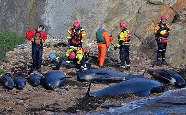 英格兰一个海湾领航鲸集体搁浅 16头已经死亡 来源: 神秘的地球 时间:2012年9月03日 21:23 英格兰一个海湾领航鲸集体搁浅 16头已经死亡 英格兰一个海湾领航鲸集体搁浅 16头已经死亡 英国海岸警卫队2日在英格兰的一个海湾发现众多领航鲸(pilot whale)搁浅,目前有16头鲸鱼已经死亡。 据报道,该事件发生在当地时间2日早上7点左右,英国海岸警卫队正在其它10头被困的鲸鱼进行救护,帮助它们重返海洋。这些领航鲸每头大约有6米长。 目前暂不清楚这些领航鲸集体搁浅的原因。 中新网9月3日电 上一篇 下一篇 TAG: 领航鲸