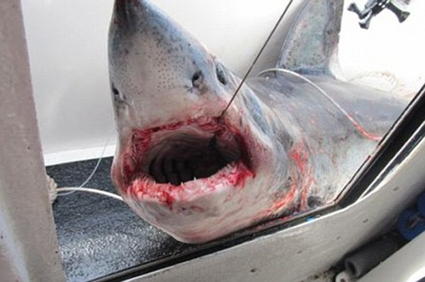 英国渔夫遭2米长鲨鱼咬脚 厚靴子让他逃过一劫
