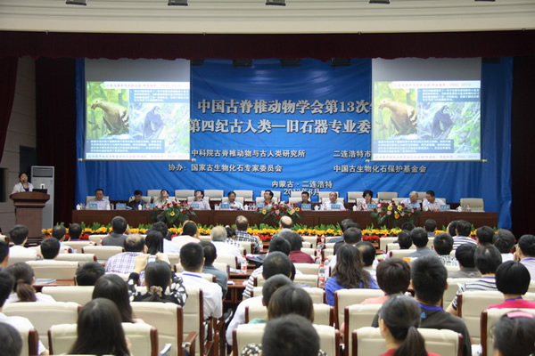 由中国科学院古脊椎动物与古人类研究所和二连浩特市国土资源局联合主办的中国古生物学会古脊椎动物学会第13次学术年会暨第四纪古人类—旧石器考古专业委员会第4次学术年会,于2012年8月25日至27日在内蒙古自治区二连浩特市召开。来自全国各科研院所、高校、文博系统等80多家单位的200多位代表参加了会议。这是中国古脊椎动物学会成立以来参与代表最多、规模最大的一次年会。