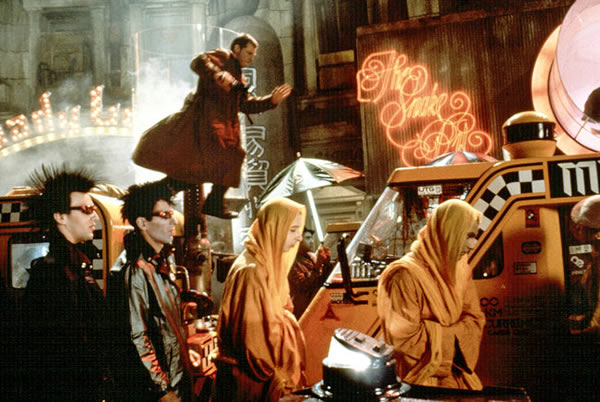 斯科特1982年的电影《银翼杀手》中的一幕,哈里森·福特(上)。