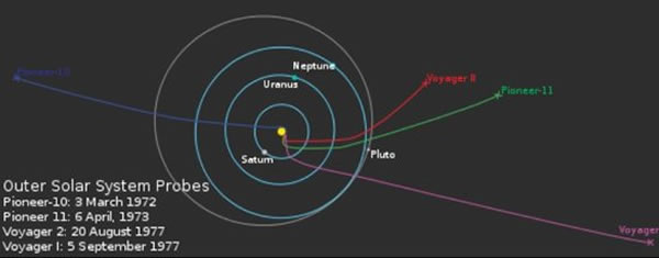 四艘行星际探测器正在飞离太阳系的途中