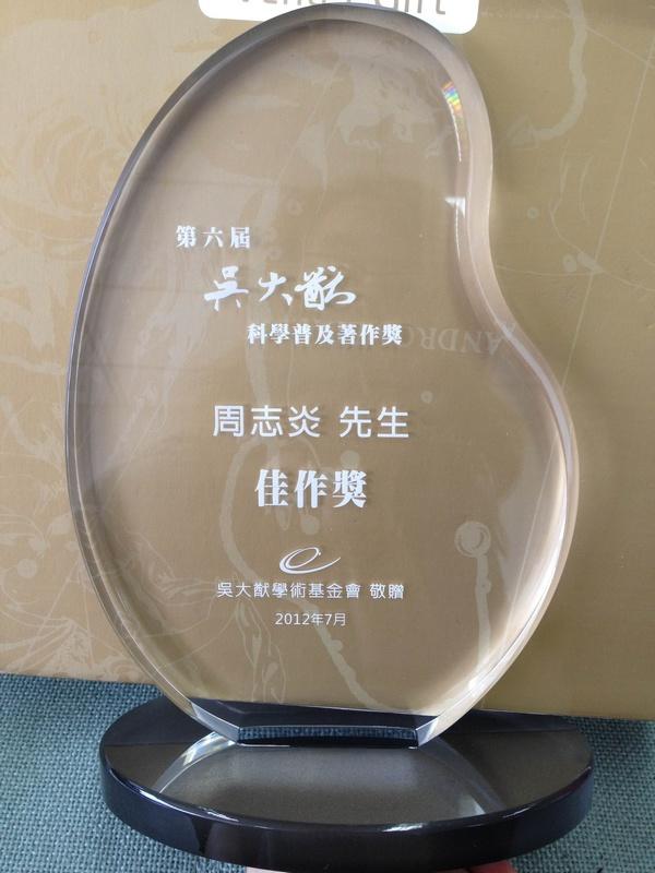 《远古的悸动——生命起源与进化》获吴大猷科学普及著作创作类佳作奖 来源: 神秘的地球 时间:2012年9月08日 09:08 《远古的悸动——生命起源与进化》获吴大猷科学普及著作创作类佳作奖 第六届吴大猷科学普及著作奖近日在台湾揭晓,由中国科学院南京地质古生物研究所周志炎院士主编的科普图书《远古的悸动——生命起源与进化》获得创作类佳作奖。 由吴大猷学术基金会主办、中国时报开卷周报、中国科学报社(北京)合办的本届评奖,收到了来自两岸三地各出版社送评的400本科普图书。经过初赛、复赛和决赛,共有包括“远古的悸动”一书在内的20本科普图书获奖。 中国科学院南京地质古生物研究所 上一篇 下一篇 TAG: 进化 生命 吴大猷