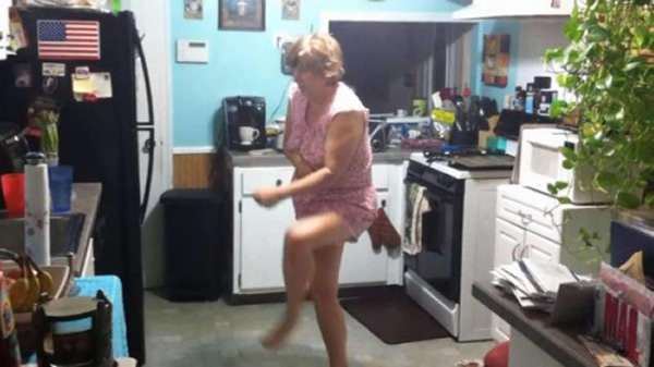 影片中,尼克的母亲身穿粉红色睡衣出现在厨房,双手抱在胸前,身体左右摇晃,尼克顺口问母亲在做什么,母亲回答“我需要特殊密码”,两只脚同时不断地前后移动,好像是在跳某种舞步,接着原地转圈并对镜头突然微笑。
