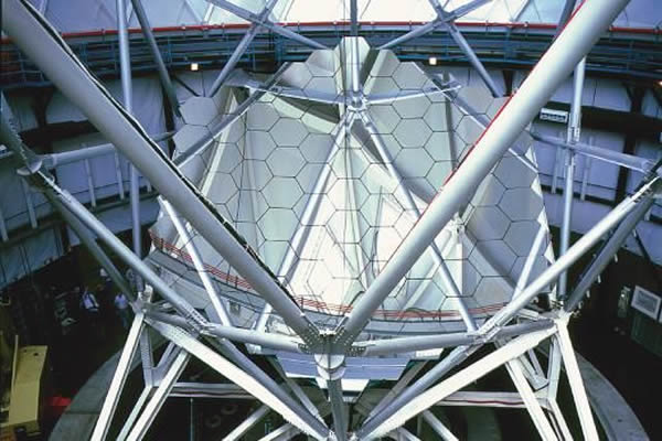 这是麦克唐纳天文台的哈比-埃博利望远镜(HET)的主镜片。这一镜面由91块小镜片拼接而成,其有效孔径达到9.2米。