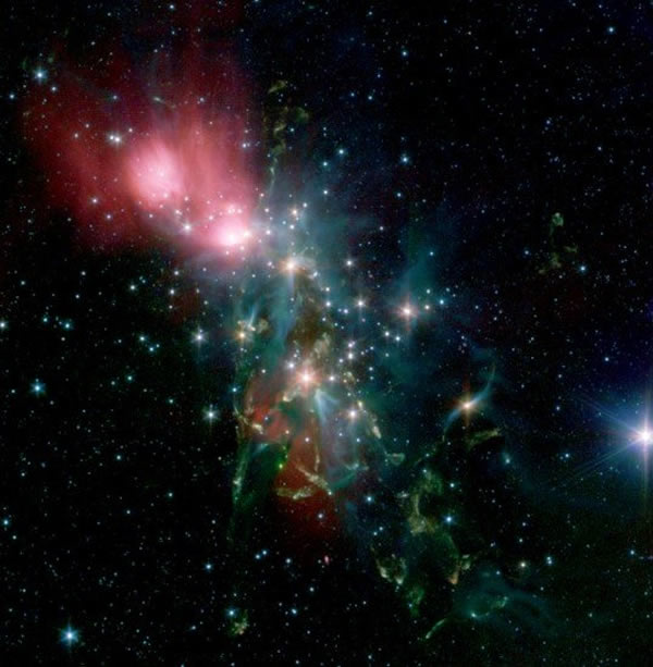 英仙座方向上的反射星云,其中可见到气体云笼罩的恒星形成区