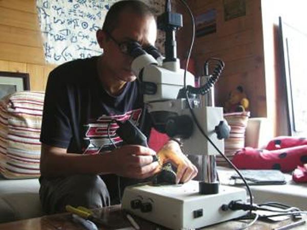 “化石猎人”显微镜下修化石