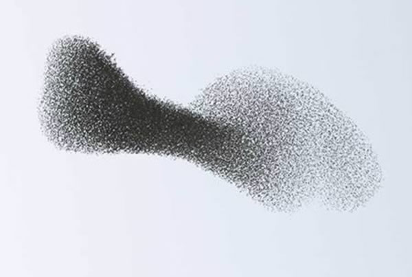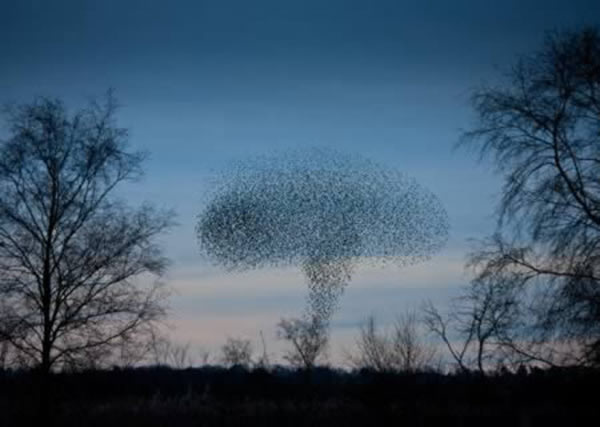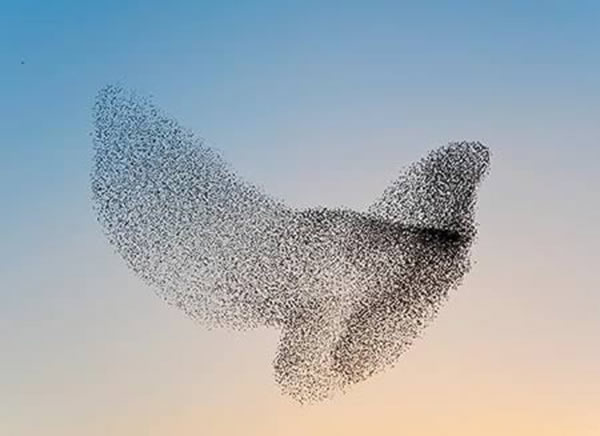 这张照片是由曼纽尔-普莱斯蒂拍摄到的。动物的群体能力,比如说这群椋鸟即使是没有头鸟也能构成了一个整体形状移动,这就反映出它们集群行为的天性。这就是科学家为解决人类问题目前正在探索的事情。