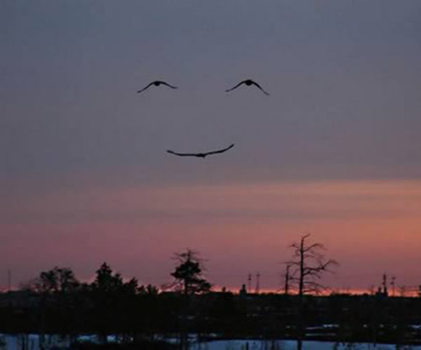 这个鸟群构成了一个巨大的唐老鸭头像。