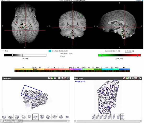 人类染色体组里有超过2万个基因,大约84%活跃在人类大脑里。为了创作这个图谱,科学家先对所有大脑进行扫描,然后把它们切成小块。接着扫描每一小块,记录2万个基因的活跃水平。对两个完整大脑的扫描结果进行对比后,该科研组发现他们所谓的“遗传基因蓝图”。他们的下一个目标是扫描一位女性的大脑,看一看它同男性大脑有什么不同。