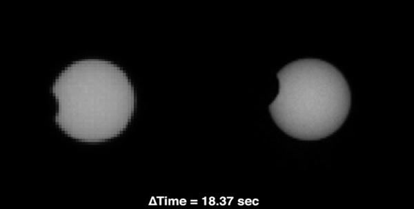 美国国家航空航天局的“好奇”号火星车拍摄到火星上出现的若干日偏食的照片,科学家认为通过这些照片可以更好地了解关于火星内部的结构和组成。重达近一吨重的好奇号火星车,在9月13日拍摄到火卫一遮挡住部分太阳盘面的景象,几天之后,火星上还出现了火卫一和火卫二、火星轨道上其他微小岩石相继遮挡太阳盘面的日偏食事件。