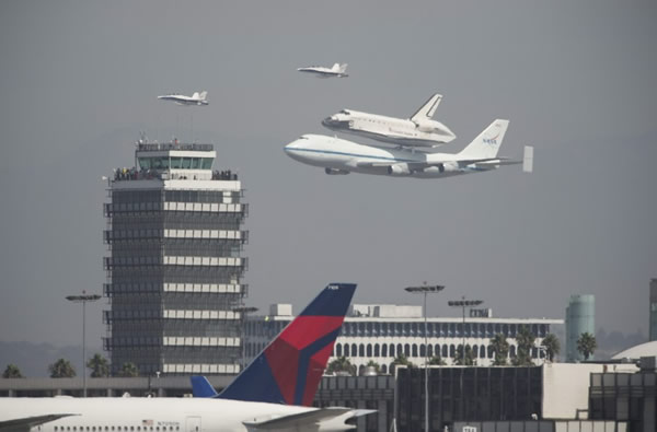 9月21日中午,美国“奋进”号航天飞机“飞”抵洛杉矶国际机场。