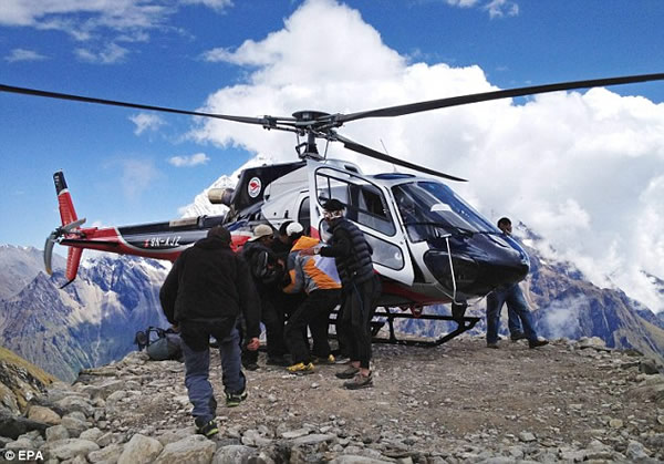 另据飞机救援人员巴桑(Pasang)介绍说,受伤的3名法国人和2名俄罗斯人已被送往尼泊尔首都加德满都进行治疗,同时救援人员将试图把遇难者遗体带回到基地营中。
