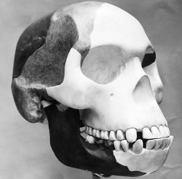 也许这个问题更值得我们思考:为什么这个骗局会如此成功,过了40年才暴露?我们也许会把它归咎于当时化石鉴定技术的落后。并非完全如此。如果在当时进行仔细鉴定的话,也不难发现那是赝品:很容易发现其下颚骨是人工染色的,而且只染了表面,在下面就是白色的、还没有石化的骨头。