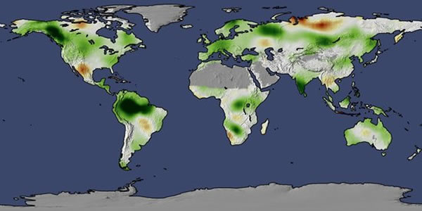 通过卫星观测数据分析生态学家推断陆生植物的生长已经基本保持不变