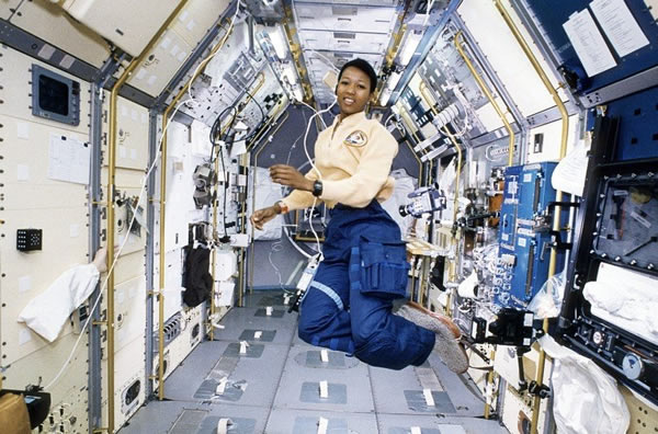 拍摄于1992年奋进号内部,梅•杰米森是第一个进入太空的美国黑人女性