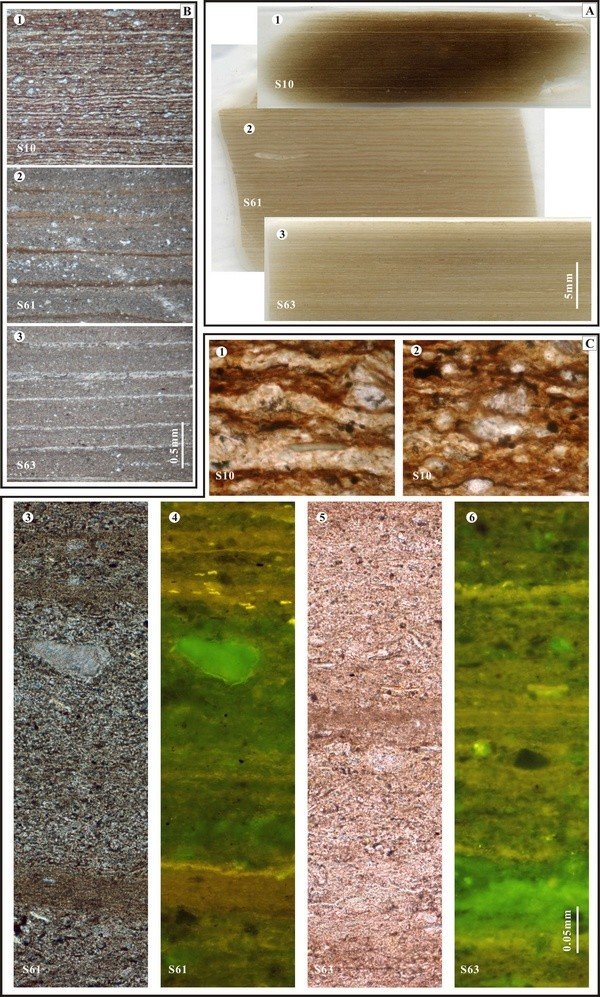 最近,中国科学院南京地质古生物研究所张晓林博士和沙金庚研究员选取四合屯古生物化石馆剖面为研究对象,通过高分辨率的岩石样品采集、连续光面的磨制、岩石薄片的磨制和显微观察,对尖山沟化石层的沉积纹层进行了细致的研究。研究发现剖面中的碎屑–富有机质纹层非常发育,纹层的形成主要是由水文循环等季节性的气候变化所致,湖泊底层水体永久性或者季节性的缺氧环境对纹层的保存起到了至关重要的作用。另外,通过对年纹层厚度的详细测量得出7.43米厚的四合屯湖相沉积层的沉积速率为0.2-0.7毫米/年,整个湖相沉积层的形成时间不超过4万年,远低于之前学者们提出的约1个百万年(Ma)的结论。