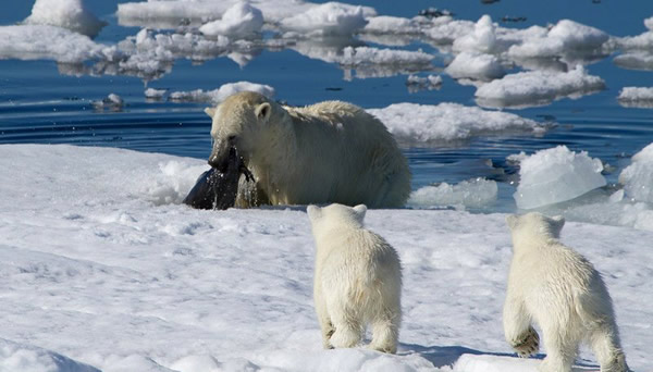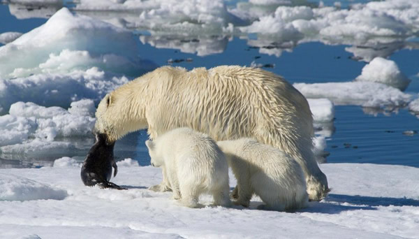 北极熊妈妈辛苦捕食与自己孩子一起分享 来源: 神秘的地球 时间:2012年9月28日 12:34 北极熊妈妈辛苦捕食与自己孩子一起分享 北极熊妈妈辛苦捕食与自己孩子一起分享 北极熊妈妈辛苦捕食与自己孩子一起分享 野生动物摄影师Sue Forbes在挪威斯匹次卑尔根群岛拍摄到北极熊妈妈辛苦捕食,与自己孩子一起分享食物的画面。这只北极熊母亲带着两只幼崽散步,突然它停了下来,走到冰面的边缘,然后俯身一头扎进水面开始捕食,历经千辛万苦北极熊母亲终于成功捕捉到了猎物——海豹,于是这位母亲毫不吝啬的招呼一旁的幼崽一起分享食物。 东方IC 上一篇 下一篇 TAG: 北极熊