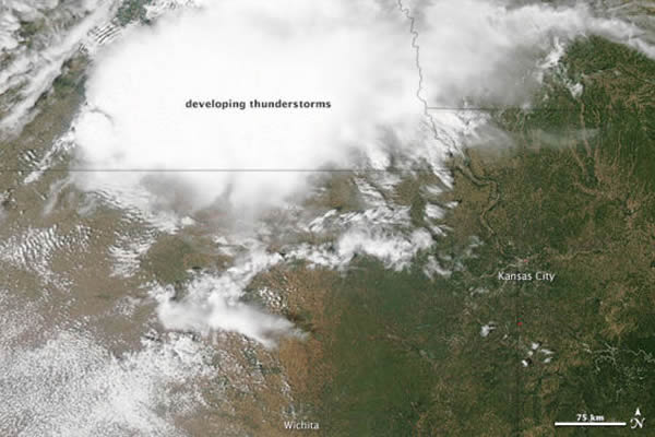 美国宇航局地球观测站公布了一组风景摄影及卫星照片,展示了今年5月发生在美国堪萨斯州威奇托市的暴风景象。
