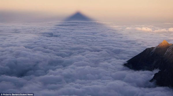 目前,罗伯托已经收藏了许多这样的光影照片,这些照片都是他日落时分在海拔3538米的山峰上拍摄的。他说,自己非常享受摄影过程中与大自然接触的感觉。当人们在城市中行走时,没有人会对自己的影子感到惊奇,因为影子就是生活的一部分。尽管物理道理是相同的,但当影子出现在无边的山际时,观赏者还是会为这些神奇的美景所感叹。