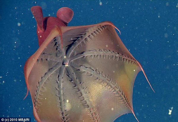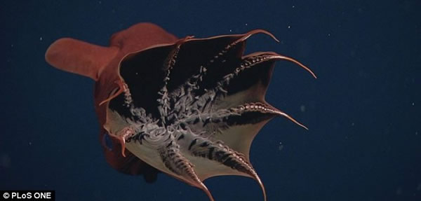 这种鱿鱼别名为幽灵蛸(Vampyroteuthis infernalis),字面意识就是“来自地狱的鱿鱼”,其普遍叫法就是“吸血鬼鱿鱼”。“吸血鬼鱿鱼”尽管已经被发现了100多年,但是它们仍然是最神秘的海洋动物之一,其许多特性,人类都知之甚少。
