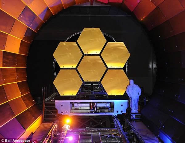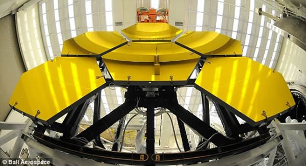 美国科罗拉多州制造商波尔航空航天技术公司已组装了21个镜面,其中包括组成一个21.3英尺(约合6.5米)主镜的18个主镜部分。镜面的各部分由铍制成,选择这种元素的原因主要有3个,一是它坚硬无比,二是很轻,三是在低温下可保持稳定。单靠铍并不能很好地反射近红外光,所以每个镜面都涂上了约0.12盎司(约合3.4克)的金。