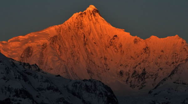 据当地气象局工作人员介绍,过去10年里谷松雪山的冻土层几乎看不到植被,而最近5年来,草绿色的植被不知不觉爬上了雪山冻土层,这与梅里雪山冬天不积雪,夏秋雨水多的反常天气有着非常明显的关联。“梅里雪山明永冰川的年平均温度为5至6摄氏度,低于零度以下才会结冰。在1994至2002年间,梅里雪山明永冰川只退缩了50米,随后退缩的速度越来越快,尤其是2006年以后,经过人工测量,冰川退缩垂直距离达到200米,斜线距离达到2000多米,而且这些年梅里雪山的年积雪厚度不到50厘米,最容易融化。”