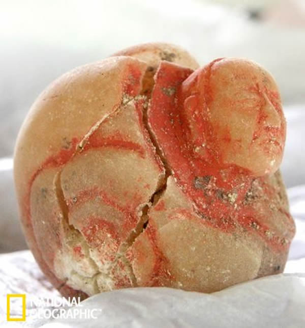 这个墓葬是在今年被发现的,当时人们正在清理古城中主金字塔下方的废墟。这项工作是由美国华盛顿大学圣路易斯分校的考古学家大卫·弗里德尔(David Freidel)领导的。伴随这具尸骸的是大量的随葬品,包括瓷器,玉器首饰,石质小雕像等。但是其中最引人注目的是一个被设计成螺状的瓶子,其上雕刻有一个老年女性的头部和手臂的形象。