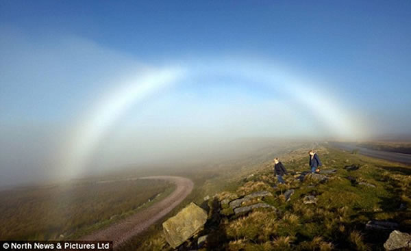 英国一个小镇出现“雾虹”奇观 来源: 神秘的地球 时间:2012年10月09日 11:07 英国一个小镇出现“雾虹”奇观 英国一个小镇出现“雾虹”奇观 秋季到来,英国一个小镇早上整个城镇都被雾霾笼罩。在小镇上空,出现了“雾虹”的奇观。 据报道,此次“雾虹”出现在清晨时分。由于小镇被雾气笼罩,空气湿度很大,空气中的水滴能够折射太阳光线,因此空中呈现出一道彩虹状的“雾虹”。但与彩虹不同的是,当太阳出来后,雾气慢慢消散,小镇的“雾虹”也就消失了。 中新网10月8日电 上一篇 下一篇 TAG: 奇观 雾虹 英国