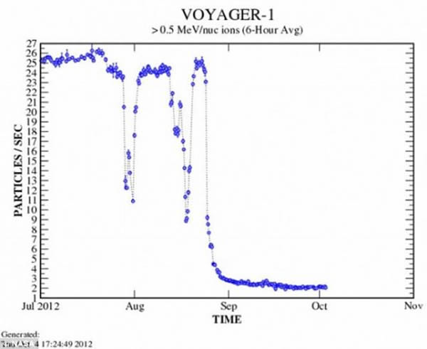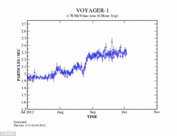 这张图表显示撞上旅行者1号的银河宇宙射线在不断增多