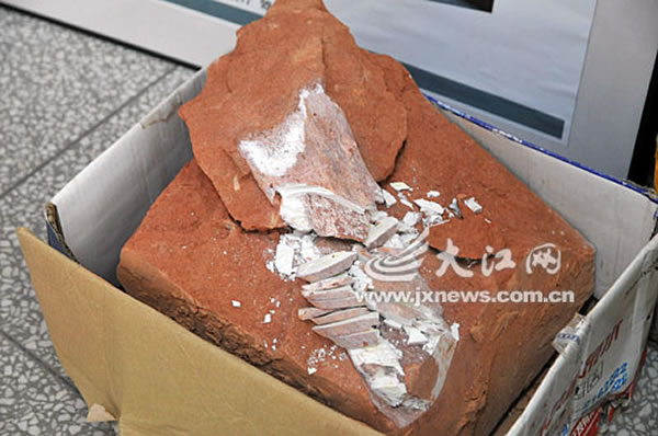 日前,在贵溪市滨江镇九牛岗陈家红石场发现一批动物遗骨,并从中获取4块骨骼化石存放在当地博物馆。经过南京地质矿产研究所古生物专家钱迈平博士认定,滨江镇采石场发现的为恐龙骨骼化石。