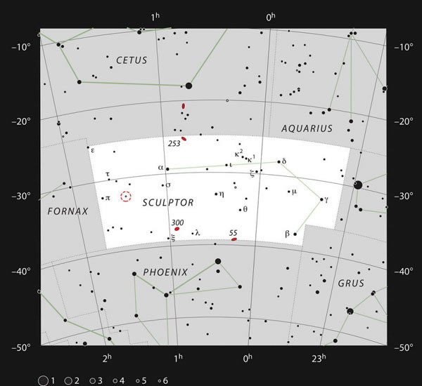 图表显示玉夫座红巨星的所在位置,图中红圈标注部分