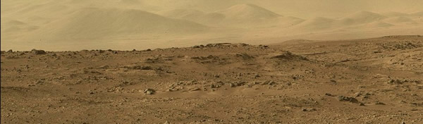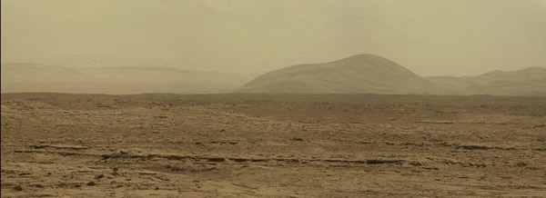 美国行星协会的博主艾米莉•兰科达沃拉则利用“好奇号”近两周前传回的3张照片拼出了另外一张更显火星荒凉感的全景照片。这位天文爱好者说:“照片里几乎看不见天空,只能看见远处若隐若现的盖尔陨石坑。”