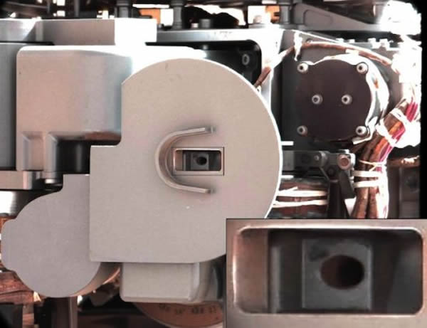“好奇”号的现场火星岩收集和处理分析装置。“好奇”号曾以沙子为对象,练习取样