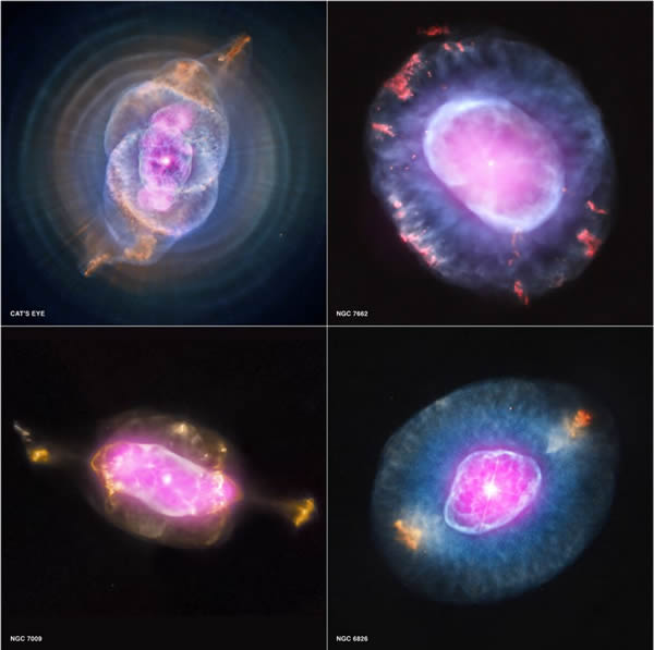 科学家利用钱德拉X射线卫星捕捉到四颗恒星濒死时的图片
