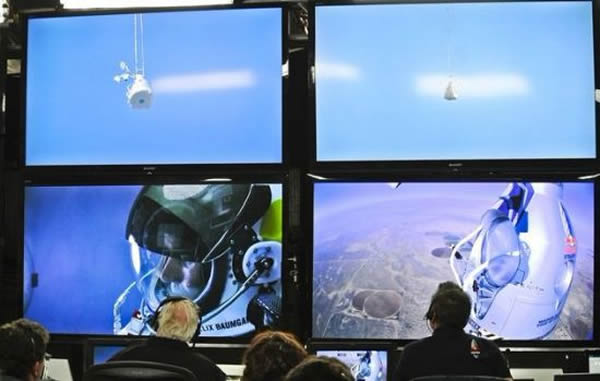 跪在地上的鲍姆加特纳,胜利地举起了拳头。地面任务控制中心内爆发出热烈欢呼,向这位勇士表示祝贺和敬意。
