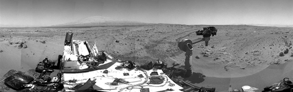 “好奇号”再度传回火星360度全景照片 来源: 神秘的地球 时间:2012年10月16日 10:56 “好奇号”再度传回火星360度全景照片 美国航天局提供图片,该图片是由“好奇号”的导航照相机拍摄的360度火星全景图像。全景图中央为南方,两端均为北方。“锋利山”位于东南方地平线上。“格雷尔”地区是“好奇号”计划前往的下一站,位于东方。“好奇号”向Rocknest行驶留下的车轮印延伸到西方。 上一篇 下一篇 TAG: 火星
