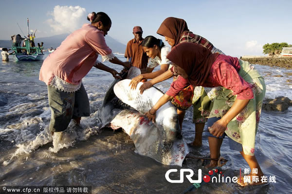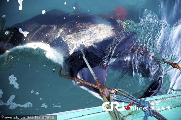 印尼渔民捕捞屠杀蝠鲼 来源: 神秘的地球 时间:2012年10月17日 12:57 渔民在印尼岛屿捕捉蝠鲼 渔民在印尼岛屿捕捉蝠鲼 渔民在印尼岛屿捕捉蝠鲼 渔民在印尼岛屿捕捉蝠鲼 这些令人震惊的图片是由环保主义者、美国摄影师Shawn Heinrichs拍摄的,意在提高增强世界范围内对于蝠鲼捕捞情况的关注。其中一张悲剧性的图片显示,一条小蝠鲼慢慢的死在妈妈的肚子上。另外还有一些图片展示屠宰蝠鲼、取腮的过程。 国际在线 上一篇 下一篇 TAG: 蝠鲼 印尼